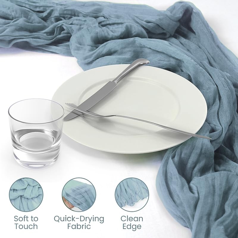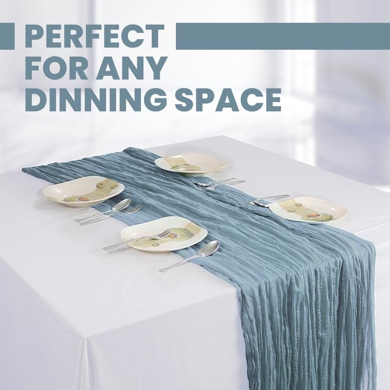 Pack of 6 Cheesecloth Table Runner 10 ft – Sheer Table Runners for Weddings, Bridal Showers, Baby Showers, Formal Dinners – Blue Table Runner to Decorate Dining Tables