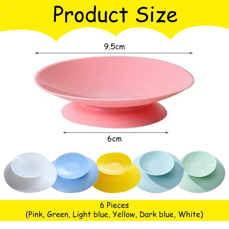 - Product contents: you will receive 6 children's cup suction cups. Each suction cup has a size of 9.5 cm and is pink, green, light blue, dark blue, milky white and yellow, which is protected for attaching various children's dishes.