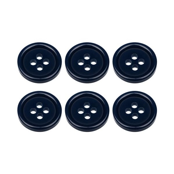 Pack of 6 Dark Blue Sew on 15mm Round Buttons Flat 4 Holes 24L 24 Ligne