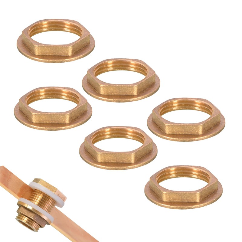 Pack of 6 Flange Hexagonal Locking Nuts, Sanitary Lock Nuts, Flange Nuts 1/2 Inch Brass, Connector Piece Hex Nut Fitting, Tap Mounting Nut, Flaring Union Nut for Bathroom