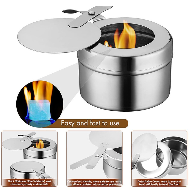 - High-quality material: fuel paste container is made of high-quality stainless steel, the surface is polished, smooth and bright, easy to clean and robust and durable without frequent replacement, very suitable for catering