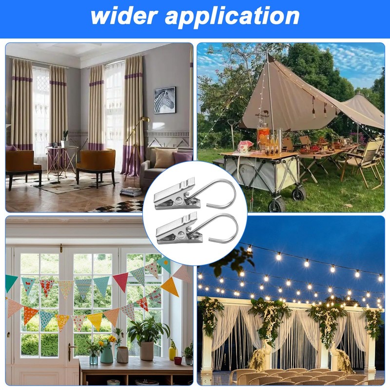 - Easy to use: curtain clamp can easily clamp curtains and hang them on curtain rods or hanging rings. In addition to using on curtains, clips can also make hanging necessities and home decorations easier.