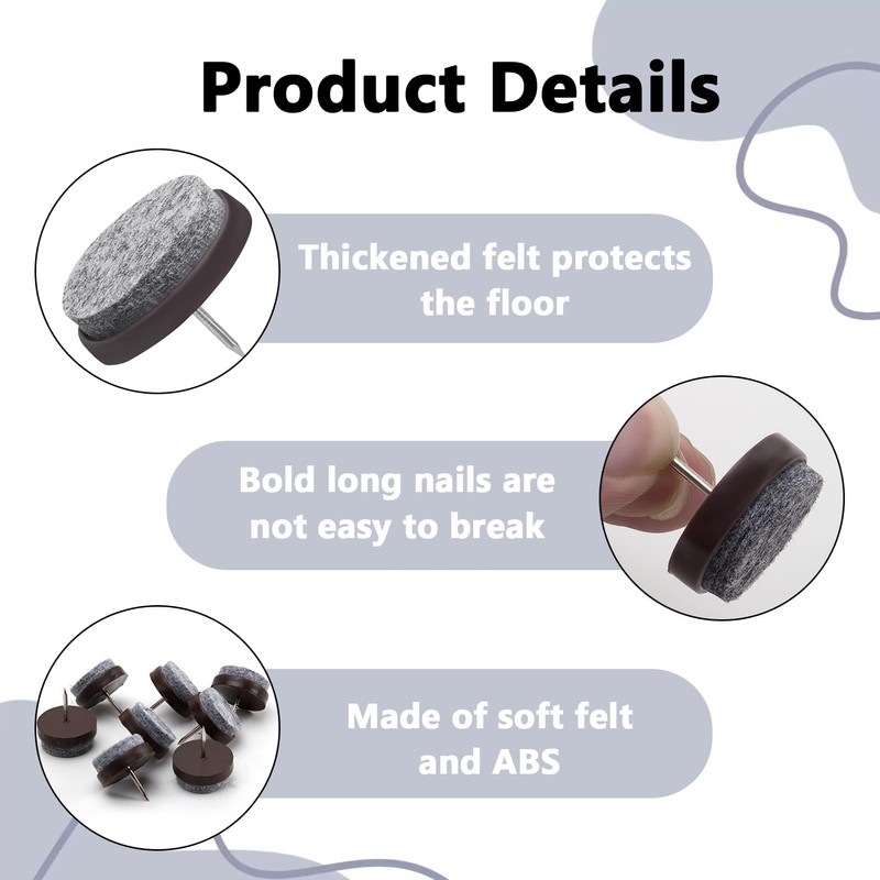 - Easy to install: Simply clean and dry the surface of the furniture to be nailed, then use a hammer to attach it to the base of the wooden chair table. Our chair felt pads are durable, will not slip or peel and can withstand high loads.