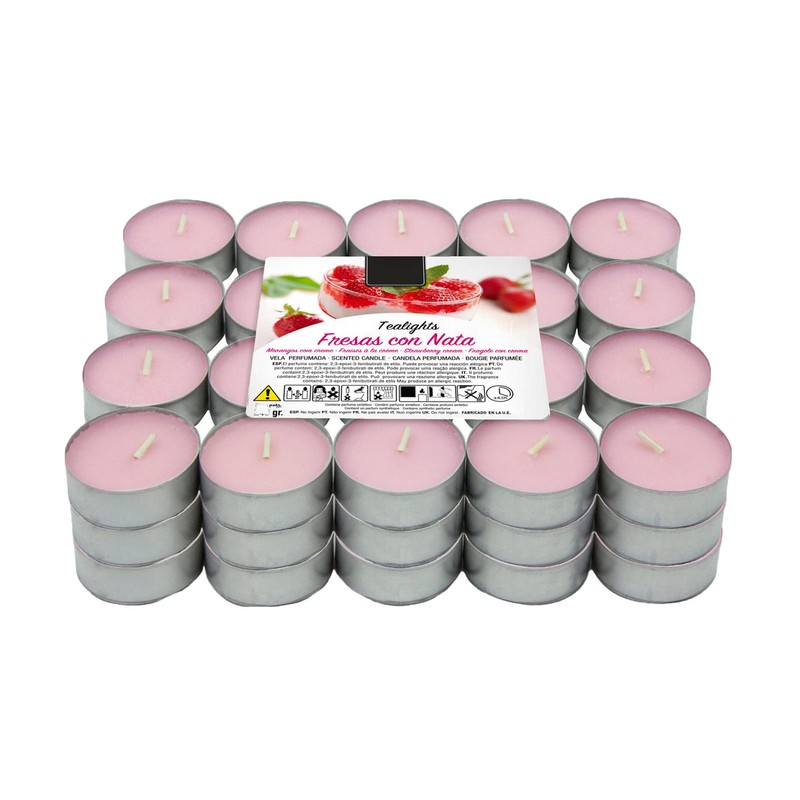 Pack of 60 Scented Tea Lights Strawberry with Cream
