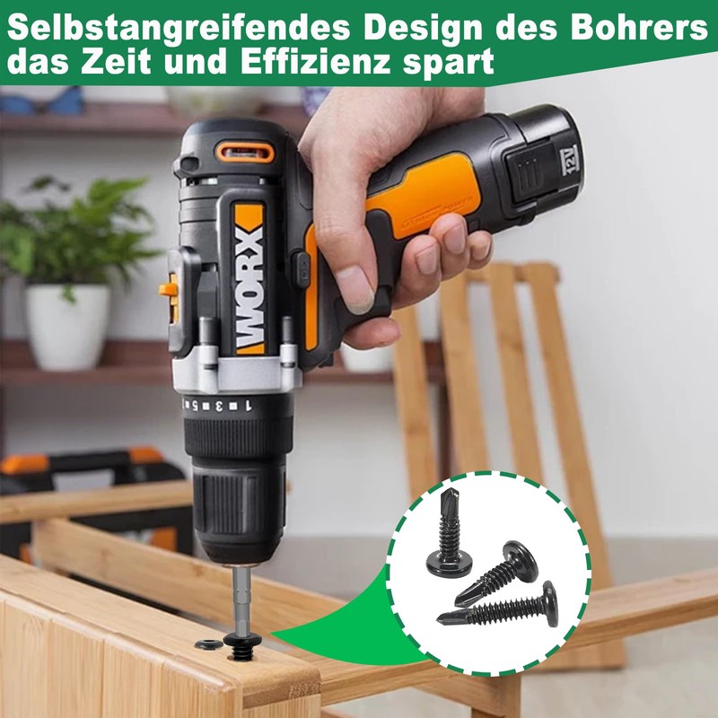 - Premium self-tapping screws: special self-drilling design (DIN 7500) for effortless installation in metal and wood.
