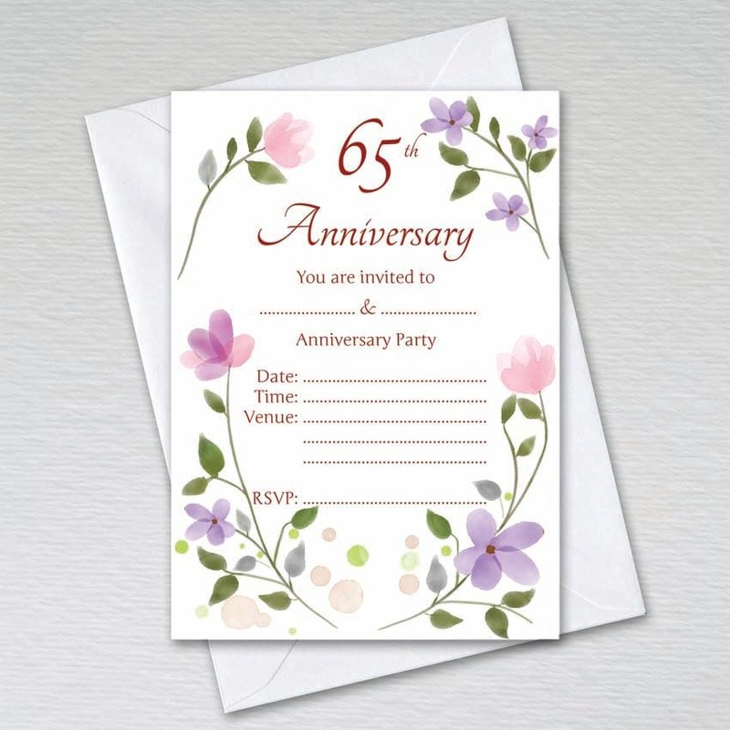 - Pack of 65th Wedding Anniversary Invitations with a stunning Floral design.