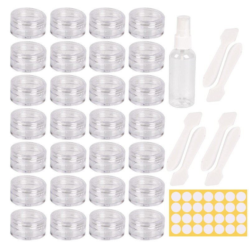 - Package includes: 70 pieces 5 ml cream jars + 80 pieces stickers with a diameter of 25 mm / 1 inch + 6 pieces scraper + 1 piece 15 ml spray bottles