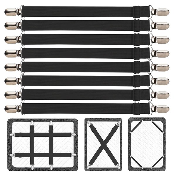 Pack of 8 Bed Sheet Tensioners, Adjustable, 67-250 cm, Elastic Bed Sheet Tensioners with Metal Clips, Fitted Sheet Holder, Sheet Tensioner, White Bed Sheet Tie Down Straps for Bed Sheet, Sofa,