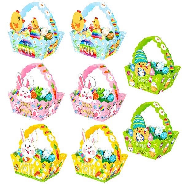 Pack of 8 Easter Baskets Craft Idea, Easter Baskets Crafts, Easter Nests for Filling Basket Easter Craft Set Paper with Easter Bunnies DIY Easter Nest Gift Baskets, Easter Gifts for Children