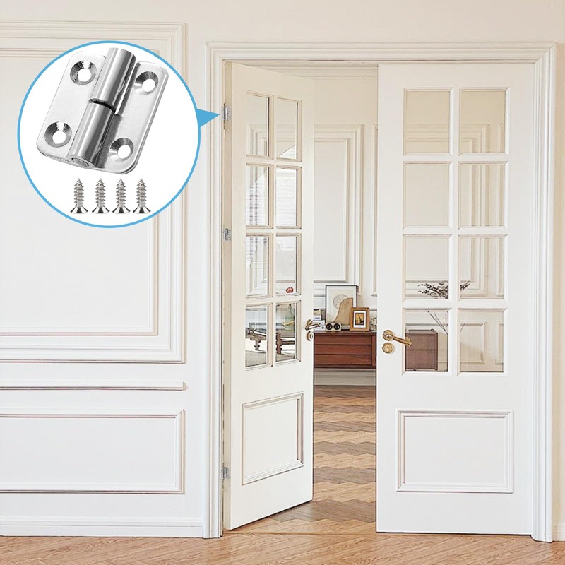 - High-quality materials: the door hinges are made of high-quality 304 stainless steel, which is robust and durable, rust and moisture resistant. The hinge edges are smooth and have no sharp corners, which makes it safer to use.