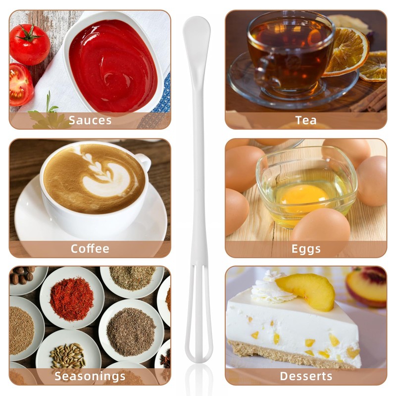 Pack of 8 Mini Whisks, Plastic Whisks Small with Mini Spoon, 2 in 1 Multifunctional Whisk Kitchen, Multifunctional Kitchen Whisk for Mixing, Stirring, Beating, Foaming Foam Stirring