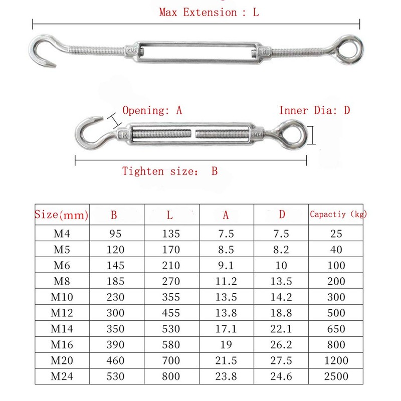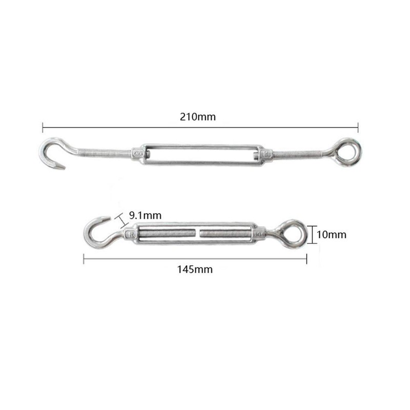 Made of 304 stainless steel for maximum corrosion resistance and durability. Anti-rust and corrosion resistance with heavy-duty construction make it last long. They are suitable suitable for tightening the rope and regulate elastic effect, easily to be used by simple twist to increase or reduce tension. Perfect for professional usage, can be used both indoor and outdoor