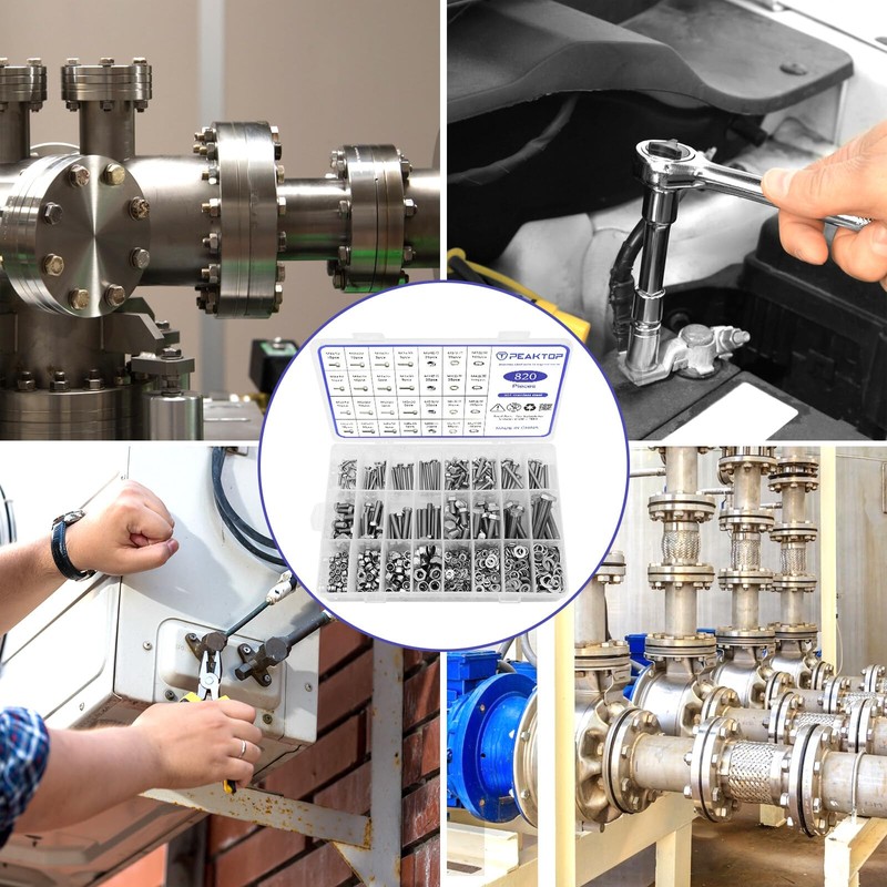 1. All 820 piece screw set are packed in a storage box, easy to find, use and carry.