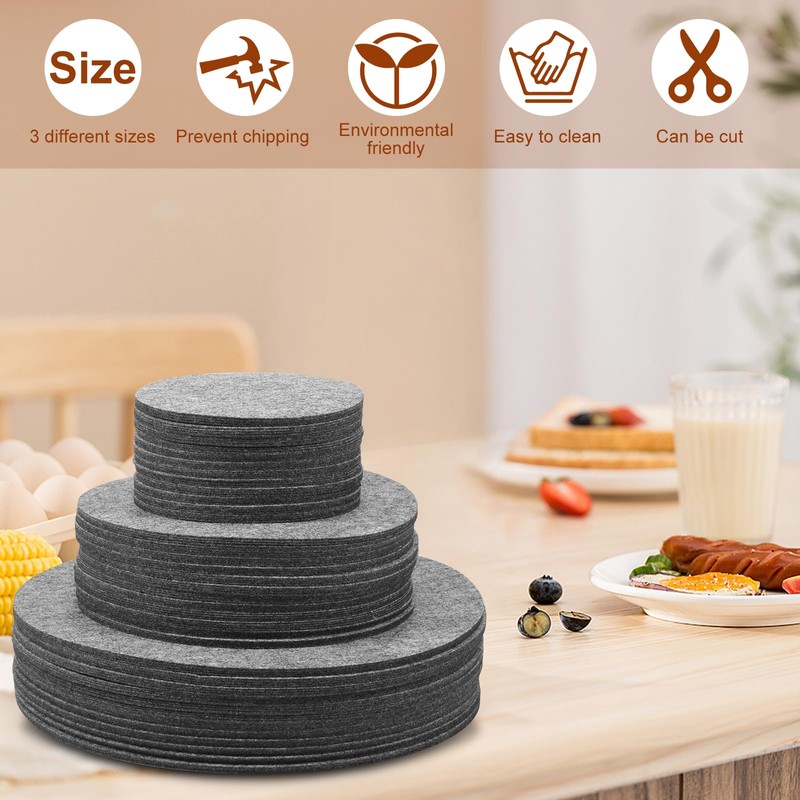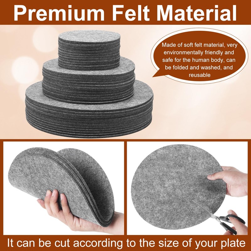 - Product material: This product is made of soft felt material, which is very suitable for protecting fine porcelain and tableware. Very environmentally friendly, durable and reusable. Package includes a total of 96 felt protectors
