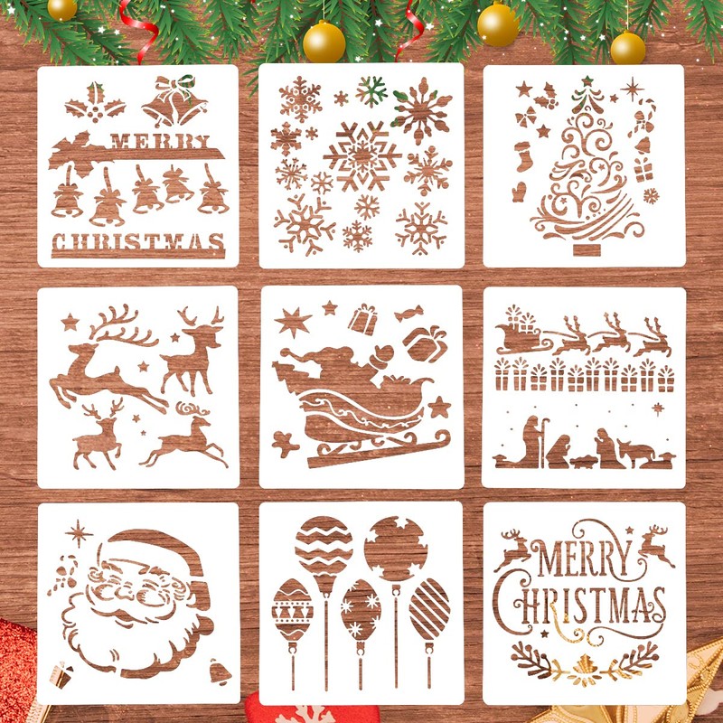 - 9 Christmas theme drawing stencils, it is suitable for most A4 papers and is also suitable for airbrushing on the walls