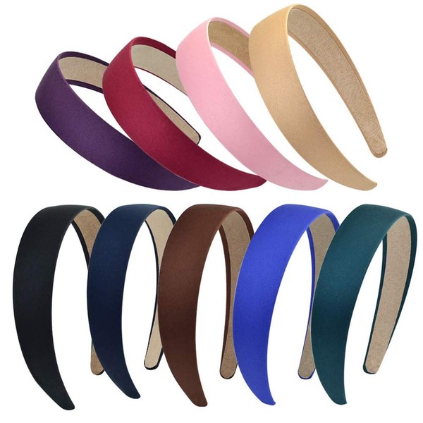 Pack of 9 Satin Headbands, Hard Headbands, Satin Headbands, Headbands, Non-Slip Band, Hair Bands, DIY Hair Accessories, Headwear for Women and Girls (9 Colours)