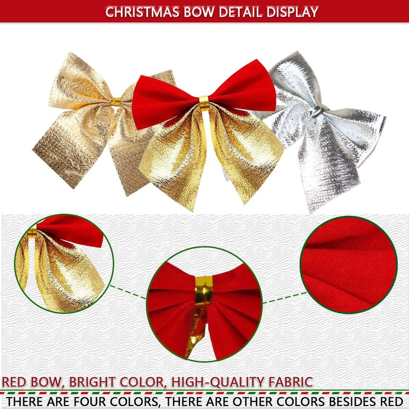 - SPECIAL DESIGN Each Christmas bow comes with a free rotating gold tinsel ribbon, which can be easily attached to a Christmas tree or other items.