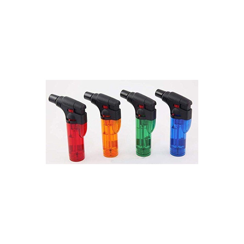 GStar TorchZilla series pocket torch lighters generates a crisp blue torch flame, making it perfect for lighting fireworks, cigars, etc. Use it for melting glass tubing or any torch functions.The lighter is also waterproof and windproof. Available in 4 colors: Red, Orange, Green and Blue, Color WILL BE RANDOMLY selected. **Please contact your seller immediately should there be any issues or questions with the product that you received, DO NOT attempt to fix the issue yourself, contact your seller immediately.** **Refilling** In a downward orientation, gently insert the butane gas canister's refilling tube into the torch lighter's refilling port, and press down gently for 2 seconds, then release and wait for a few seconds, repeat this process a few more times. For your safety, please place the included white safety plug under the ignition button when refilling. This helps to prevent any accidental depressing of the ignition button during refill. **Refueling Tip:** When refilling or filling for the first time, please make you do not fill it to full, please fill it 80% full so it allows extra room in the tank to accommodate change in butane volumes due to temperature change in its surrounding environments after refueling, so this help to prevent overfilling/over pressurizing the tank which MAY cause leakages. *** **Safety Tip:** DO NOT attempt to adjust the flame size when the lighter is ON, always do so when the lighter is OFF. DISCLAIMER: GStar will not be held responsible for any and all liability related to improper or unintended use or modification of the Gstar Lighter. The purchaser, user, or participant assumes all risk of injury from any use.