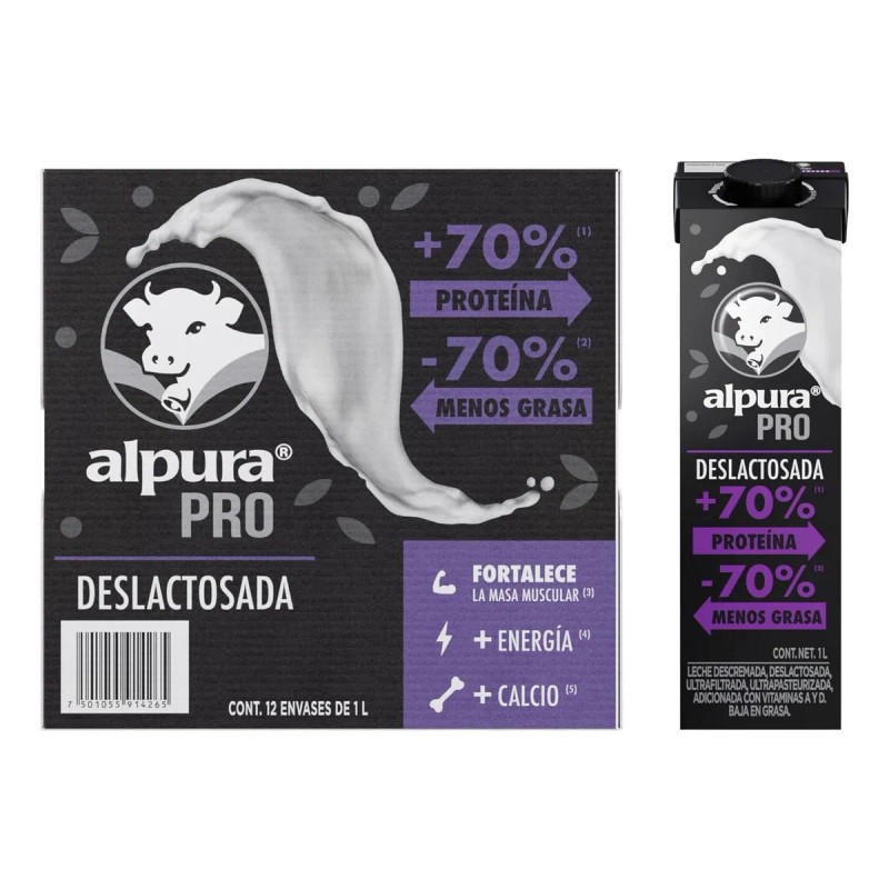 Pack X12 Leches Deslactosadas Alpura Pro Extra Proteína 1 L