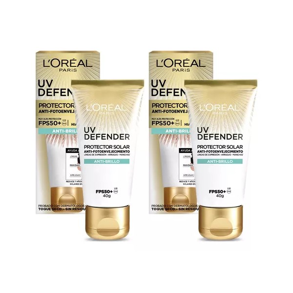 Pack X2 Unidades Protector Solar Facial Antibrillo Fps 50 Uv Defender