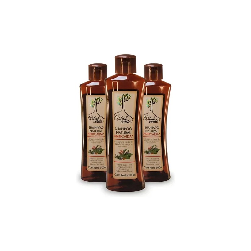 "Pack x3 Shampoo Anticaída Árbol Verde – 500 ml c/u – Tratamiento Natural con Romero, Sábila y Nogal | Detiene la Caída, Fortalece y Estimula Crecimiento – Resultados Garantizados"