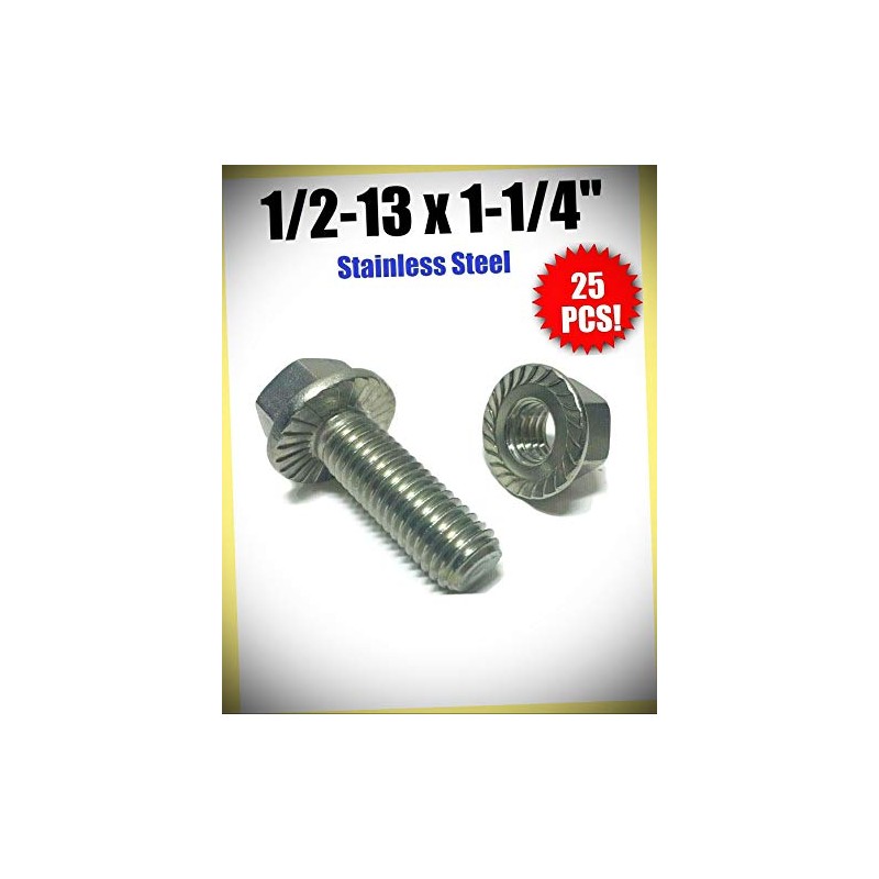 Package of 25 (pcs) 1/2-13 x 1-1/4" Stainless Steel Hex Cap Serrated Flange Bolt with Nuts Set #RD-3278FST Warranity by Pr-Mch