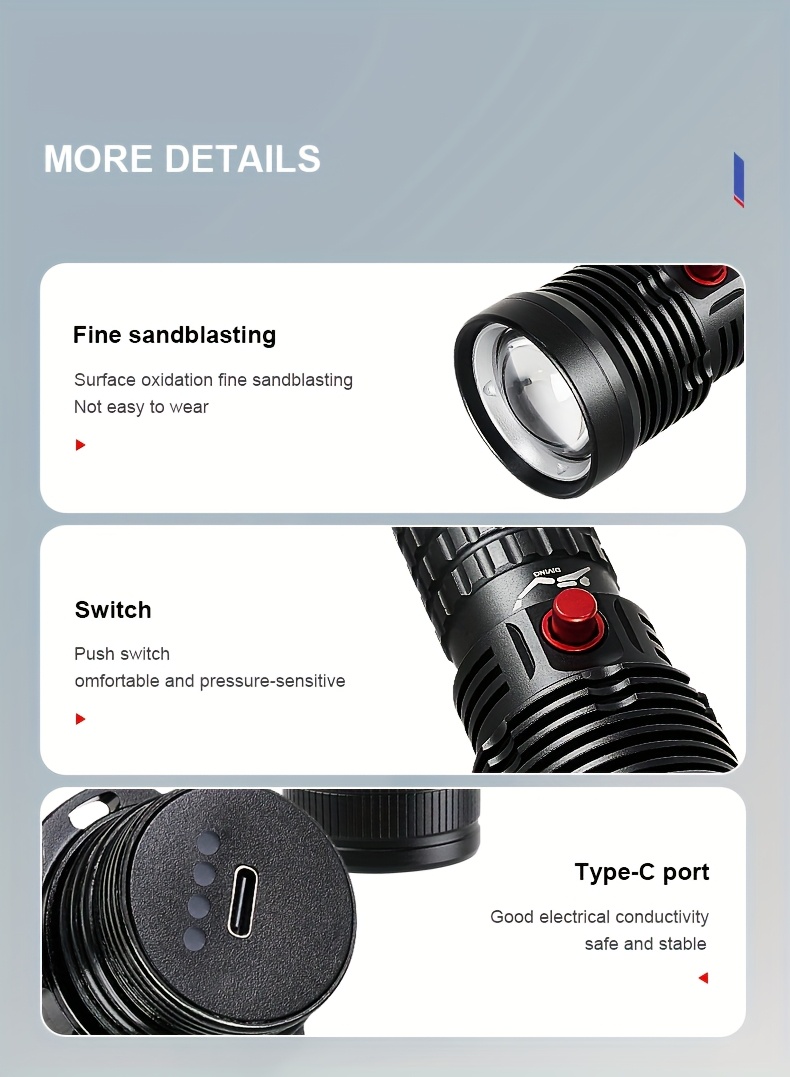 Equipped with a metal one-button switch, it is robust and long-lasting. The internal spring rebound mechanism ensures it remains unaffected by pressure, making it user-friendly.