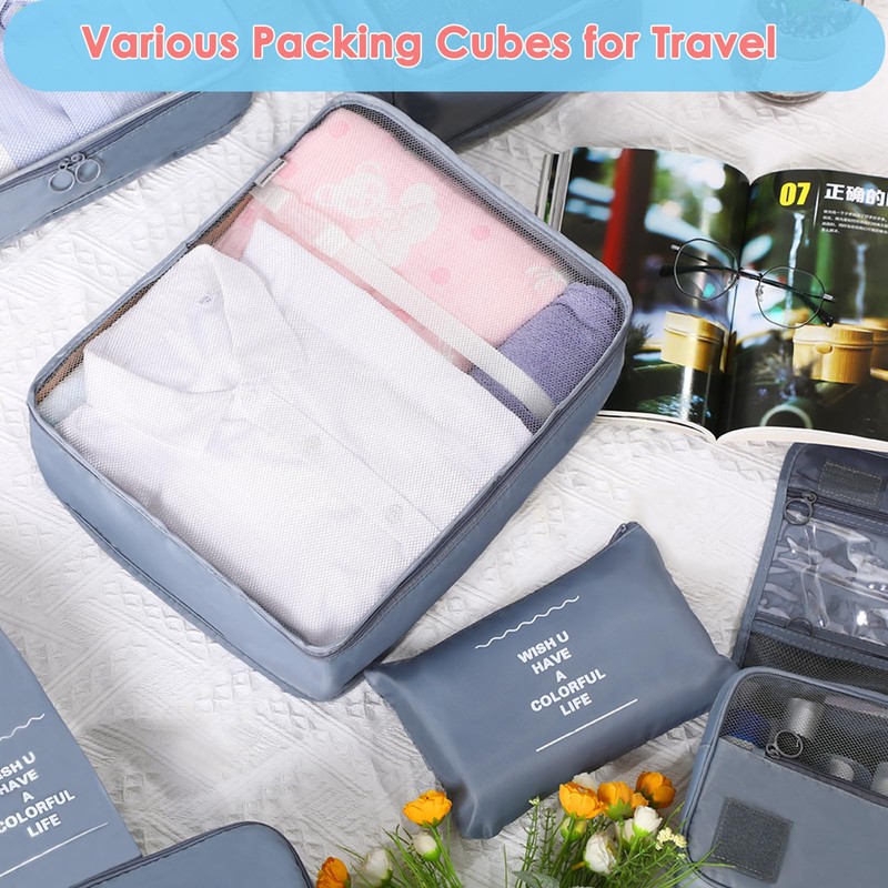 - 【Travel More Easy & Comfortable】- The packing cubes for suitcases will help organise and classify your luggage, keep your things neat and tidy, as well as protect your belongings from stains, wrinkles and damage, make your travels carefree. Super light and foldable, can be folded into flat when unused, easy to store and carry, ideal for family holidays leisure, business travel, hiking, camping, travel and more.