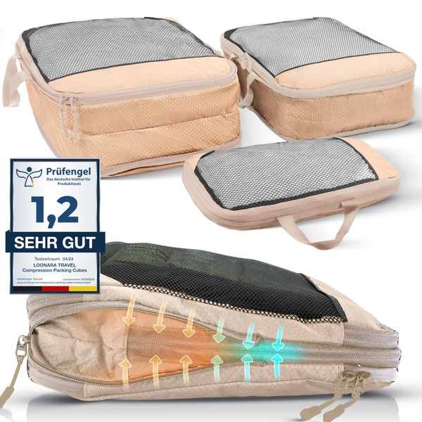 - ✈️ No more clutter – LOONARA Travel packing cubes compression for suitcases and backpack ensure almost double space in your luggage thanks to compressible packing cubes – experience your new suitcase organiser set now