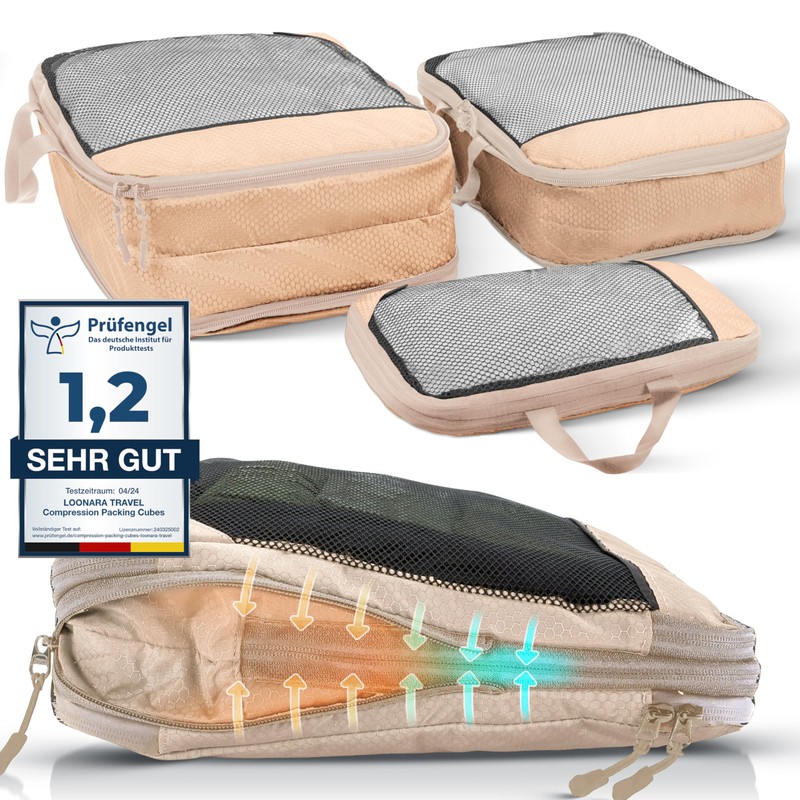 Packing Cubes with Compression for Suitcase and Backpack with Packing Bag, Desert Whisper - Beige