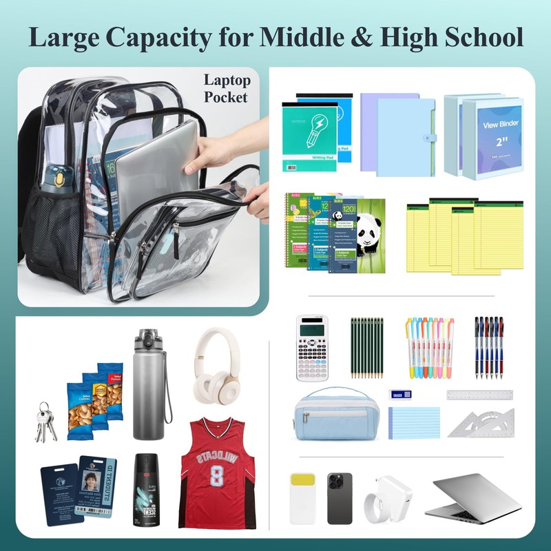 - Great for Middle or High School, Work & Travel: A stylish, functional unisex extra large clear backpack ideal for class, the office, or trips. Holds all your essentials in one place, so you don’t need extra bags. Simple, practical, and ready for anything