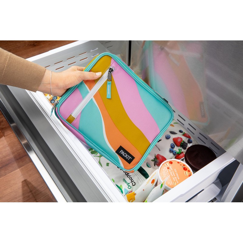 PackIt Freezable Classic Lunch Box, Retro Wave, Built with ECOFREEZE Technology, Fully Freezable, Collapsible, Reusable, with Zip Front Pocket and Buckle Handle, Designed for Fresh Lunch On The Go