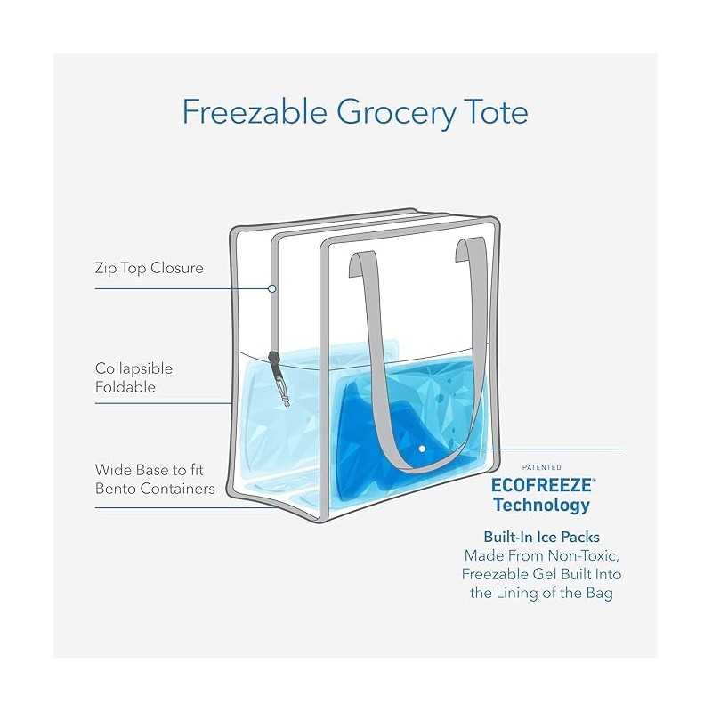 - THE BAG THAT’S AN ICE PACK: The Freezable Grocery Tote features PackIt’s groundbreaking cooling design. Patented EcoFreeze Technology, with built-in ice packs, creates a fridge-like cooling system that keeps your fresh groceries cool for hours.