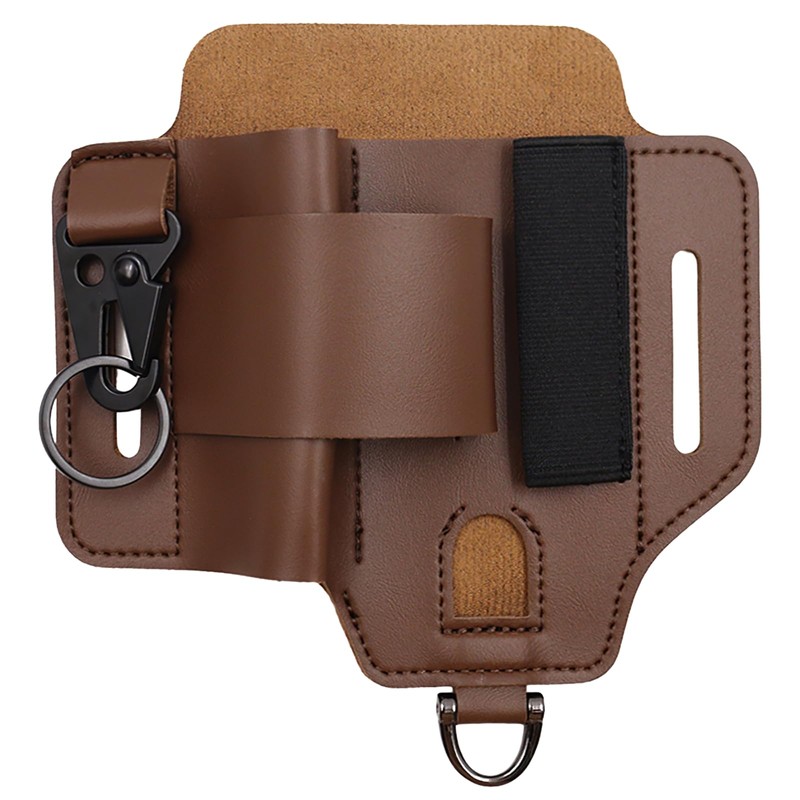 Packool Leather Multitool Sheath, EDC Tool Belt Pouch, Dark Brown PU Leather, Multi-Pocket Organizer with Key Clip, Quick Access Holster for Everyday Carry, Outdoor Work, Hiking, Camping