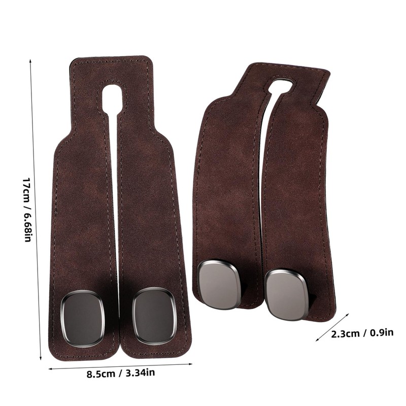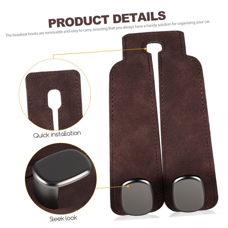 Car Accessories These hooks are made from artificial leather, giving them a sleek look.car interior accessories The hooks are designed to be space-saving and easy to use, fitting securely onto most car headrest posts.Seat Back Organizer Keep your car organized with these space-saving Headrest Hooks.car purse hooks They can support the weight of bags, coats, and other items you might need to hang