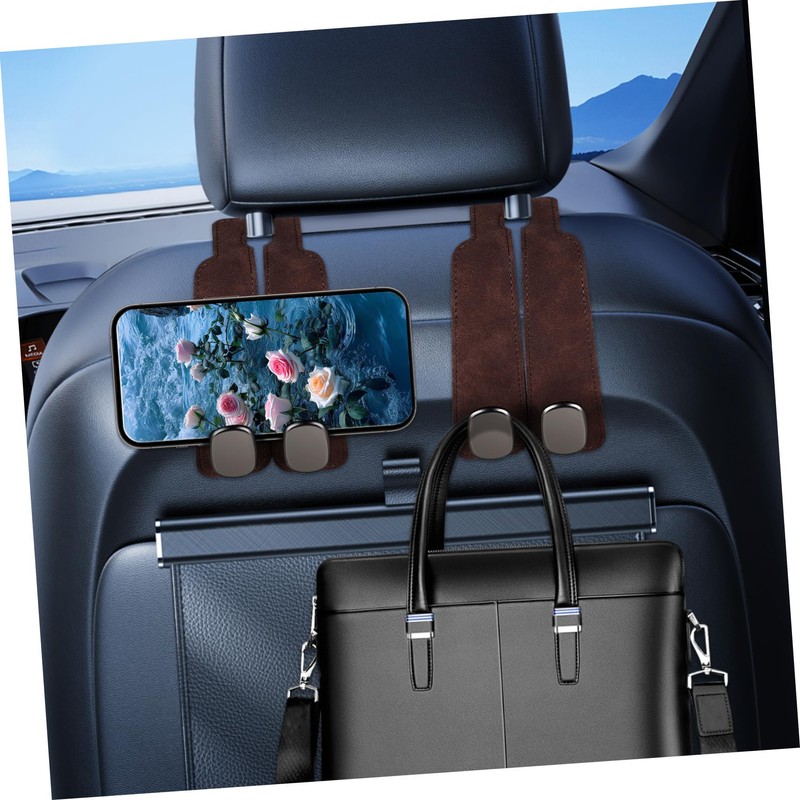 Car Accessories These hooks are made from artificial leather, giving them a sleek look.car interior accessories The hooks are designed to be space-saving and easy to use, fitting securely onto most car headrest posts.Seat Back Organizer Keep your car organized with these space-saving Headrest Hooks.car purse hooks They can support the weight of bags, coats, and other items you might need to hang
