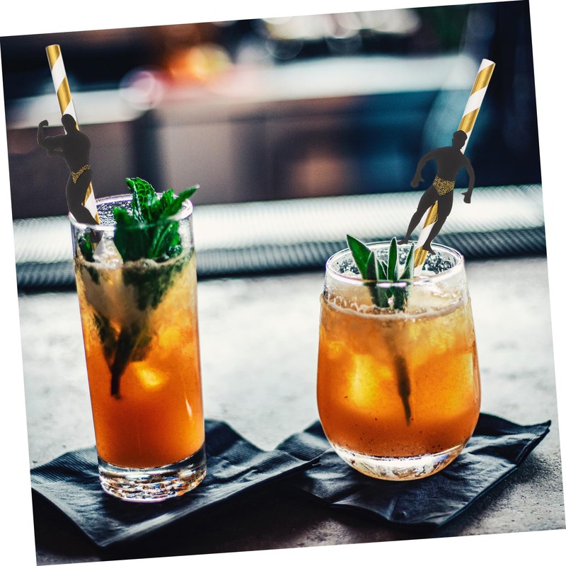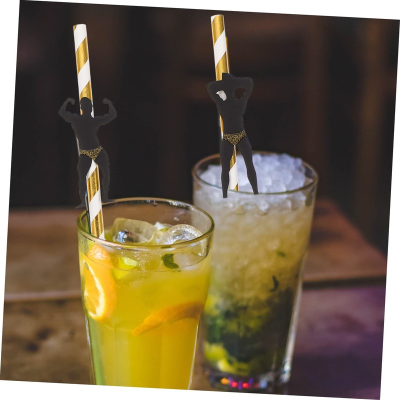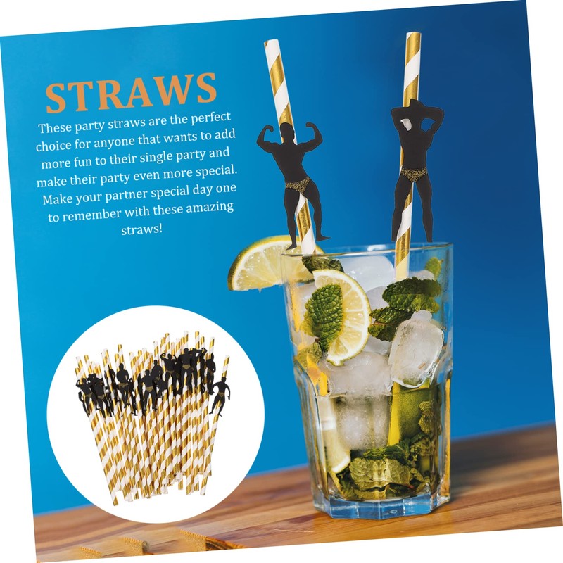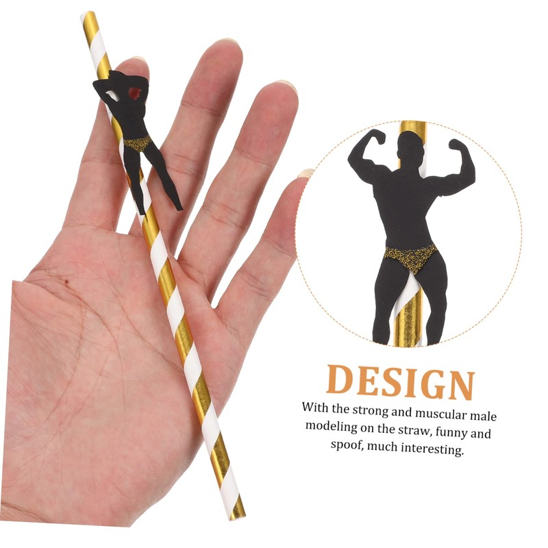 PACKOVE 36Pcs Gold Paper Straws with Funny Muscular Male Design Drinking Straws for Party Drinks Juice Beverage Decoration
