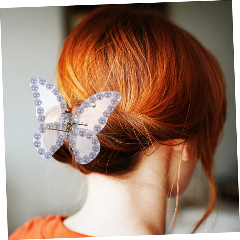 PACKOVE 3Pcs Butterfly Hair Claw Clips Comfortable No Slip Hair Accessories for Women Pearl and Rhinestone Design for Easy Hair Styling for Makeup and Everyday Use