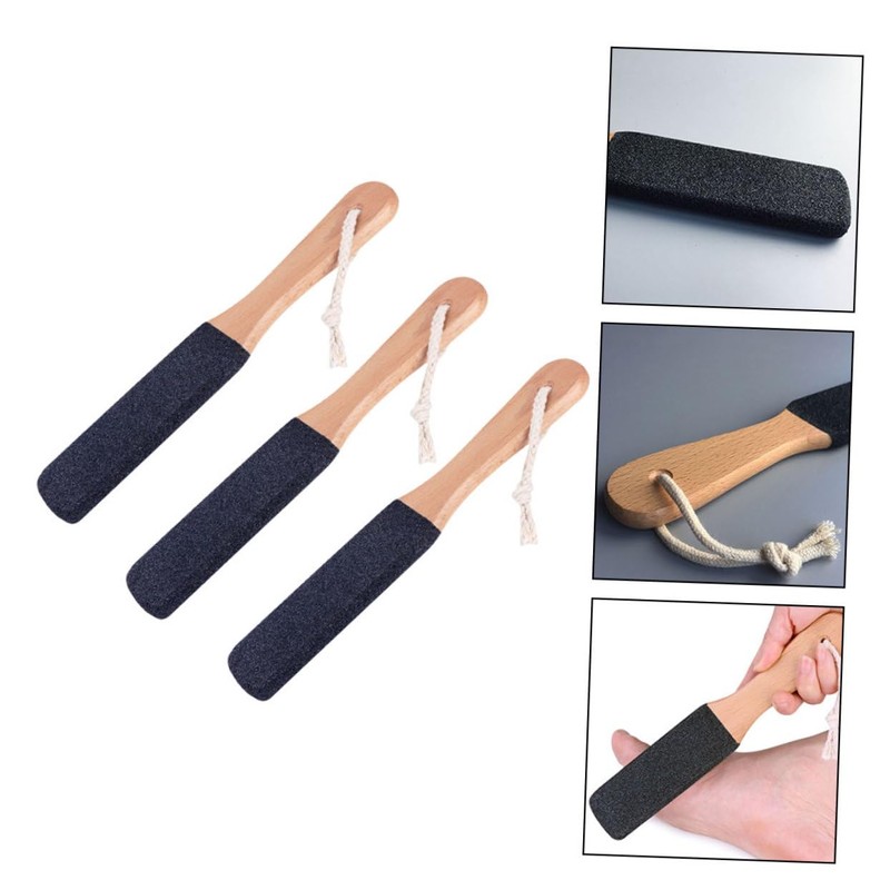 PACKOVE 3pcs Double Sided Feet File Durable Foot Scraper for Dead Skin Removal for Home Use Portable Beechwood and Carbide Black