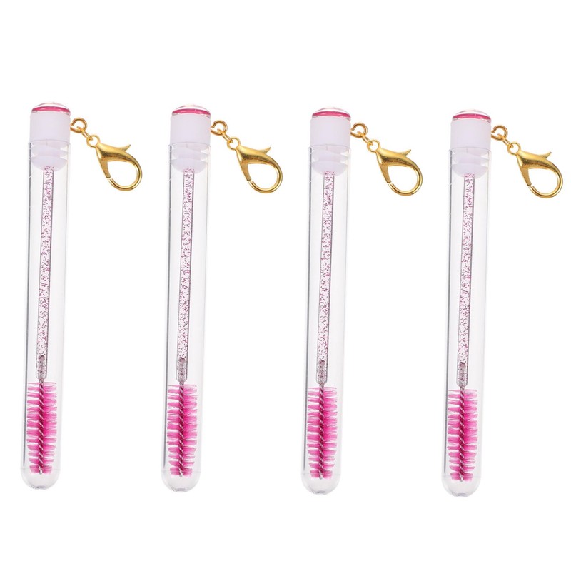 PACKOVE 4pcs Portable Eyelash Brush Keychain Diamonds Makeup Wands for Eyelash and Eyebrow Convenient Tube Mascara Brush for Women
