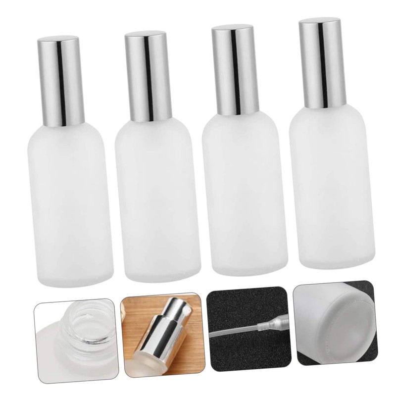 PACKOVE 4pcs Portable Refillable Spray Bottles Transparent Frosted Glass Mist Atomizers with Silver Electroplated Aluminum Caps Leakproof Storage for Essential Oils Cosmetics Travel Use