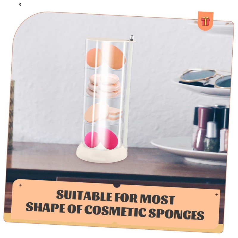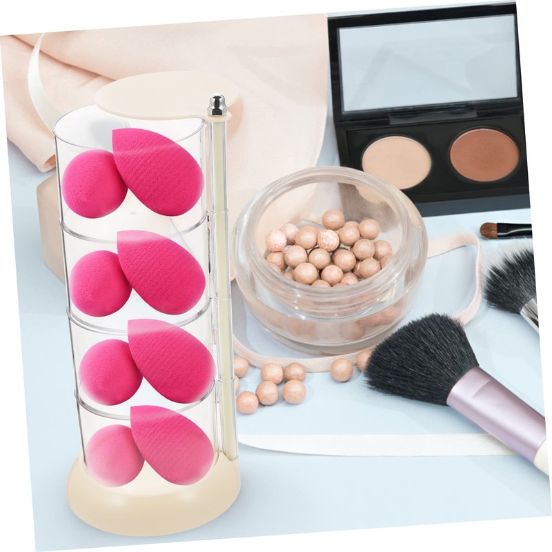 PACKOVE 4Tier Portable Rotatable Powder Puff Organizer Cosmetic Holder for Makeup Sponges Space Saving Design Durable Material for Travel and Home Use