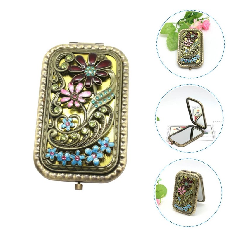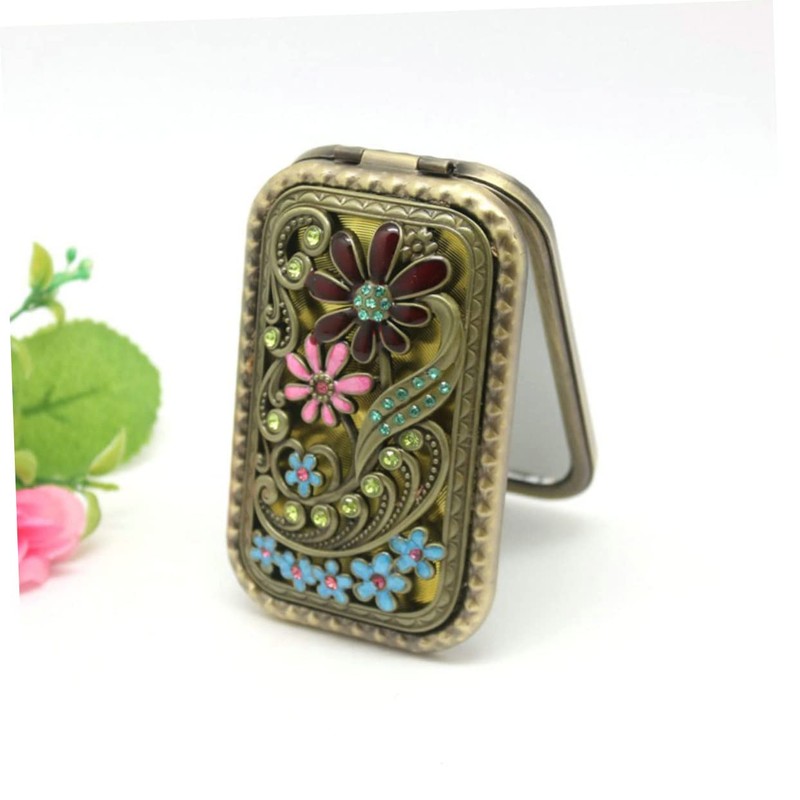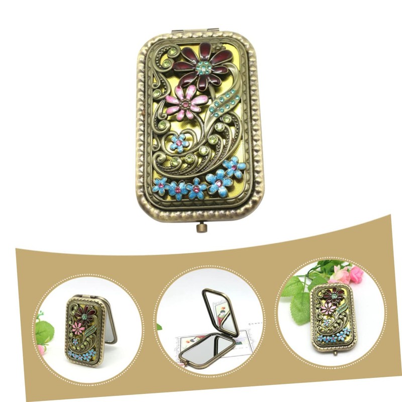 PACKOVE Foldable Small Double Sided Makeup Mirror Compact Lightweight Frame Creative Antique Style Portable Cosmetic Tool for Ladies
