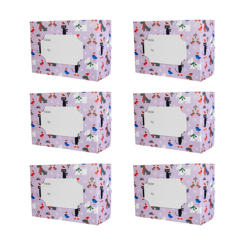 PackRite Decorative Shipping Boxes, Self-Sealing, Medium 8.81 x 5.5 x 12.25 Inch, 6 Pack (Pawsidays)