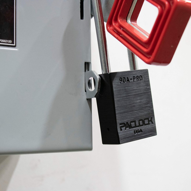 The “90A-PRO” Series of safety lock out (LOTO) padlocks are, candidly, the best LOTO padlocks in the world. PACLOCK jumped into the thermoplastic LOTO world in July of 2019 after years of customers asking for PACLOCK to do so. Instead of doing what everyone else has done, PACLOCK’s engineers took to the task of making our LOTO padlock the best and not by just a little bit. The industry standard for plastic locks was 40,000 key changes. Not bad, but not good either. Customers needed more unique key numbers. And quality is always an issue when products are made in Mexico or China. So PACLOCK designed a cylinder that leveraged our industry leading “1000Pro” Disc Lock’s pin technology and added a seventh pin. In doing so, PACLOCK introduced the only LOTO padlock with more than 200,000 guaranteed unique key numbers. “Unique” meaning that not one of those more than 200,000 key numbers will open any of the other padlocks ~ and “guaranteed” means PACLOCK will pay anyone $100 if they ever find a key that opens a padlock that it was not made for. No other manufacturer on the planet can do this or will do this. PACLOCK will and does because that’s how confident we are in our products. The second critical difference on our LOTO padlock is that it is qualified with a USA country of origin! Components are made and the full assembly is done in the USA! Not only does our US manufacturing guarantee quality, but it affords PACLOCK an unsurpassed ability to meet tight deadlines and build custom keyed or colored padlocks. Search YouTube for reviews and pick testing by industry experts. You can trust a family business that employs veterans and people with disabilities.