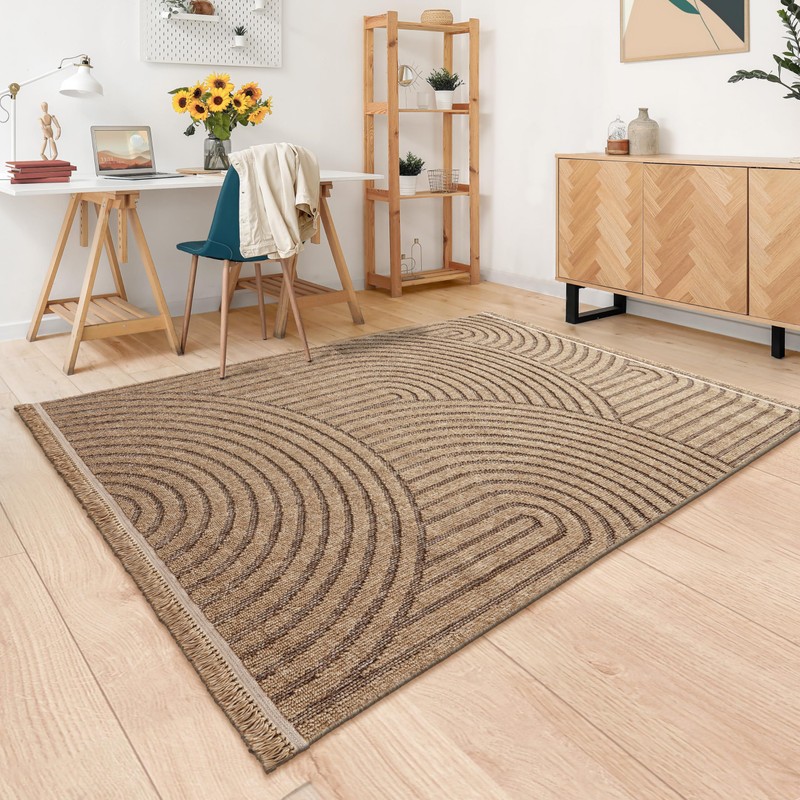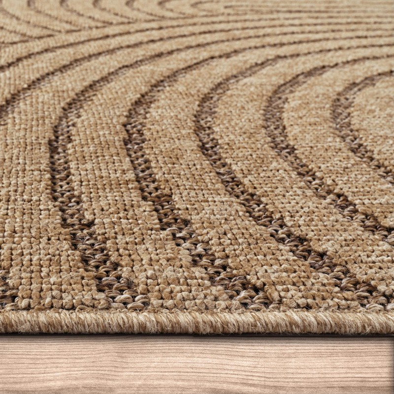 Paco Home in- & Outdoor Rug Natural Look with Modern Curved Lines in Beige, Size: 3'11" x 5'3"
