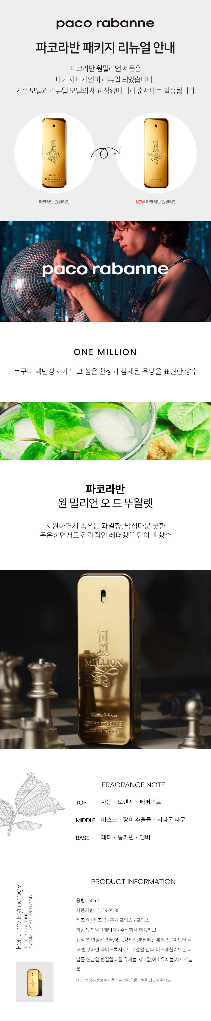 Pacoraban One Million EDT 50ml / 파코라반 원 밀리언 EDT 50ml