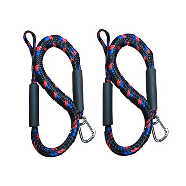 Pactrade Marine Boat Pontoon Kayak PWC Jet Ski Bungee Dock Line Mooring Rope 4'-5.5' with SS316 Snap Hook Salt and Fresh Water Use 2 Pack (Red, Blue & Black)