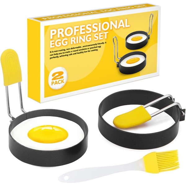 PacuM 2 Pack Egg Rings Non Stick Frying Egg Circles for Frying Round Egg Shaper Egg Moulds for Fried Eggs with Anti-scald Handle and Oil Brush for Egg Frying, Pancakes, Mini Burger