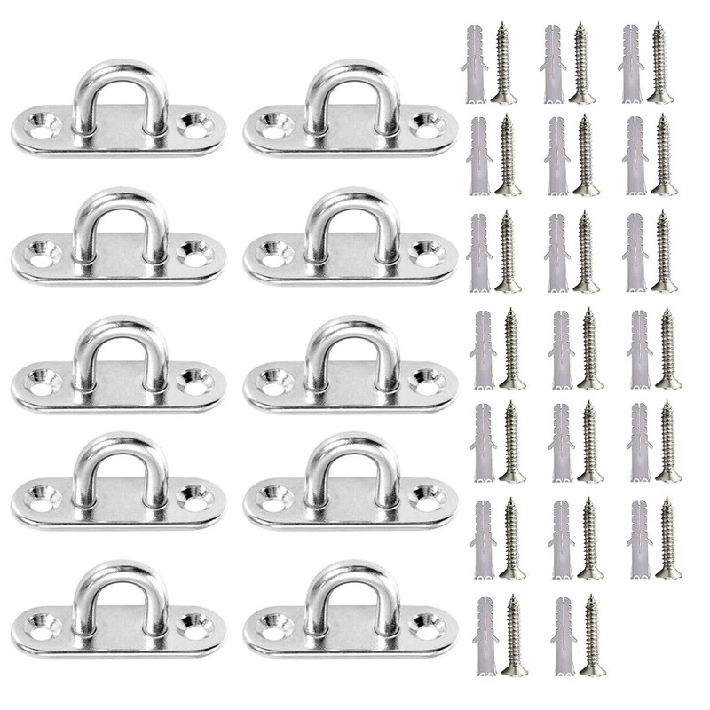 Pad Eye Rectangular Eye Plate 45mm x 15mm Stainless Steel Loop Ceiling Hook U Shape Hardware Fixing Installation 10pcs with 20 Screws